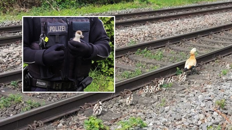 Polițiștii federali au salvat o familie de gâște de pe șinele unei linii de cale ferată din sudul Baden-Württemberg.