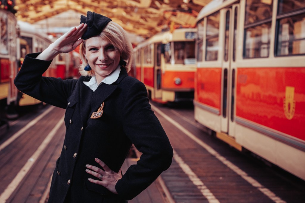 Gradually, she had a close relationship with the history of transportation. As a young girl, Karolína traveled as a conductor and a steward on steam trains, allowing her to travel abroad, often with friends. After six years as a „normal” driver, she received an offer to represent the newly designed tram T3 Coupé, which is intended for sightseeing trips, birthday parties and company briefings. „I accepted the offer, and along with it came a prestigious offer to drive other sightseeing trams, which are mostly really old and have a different driving style. It was another tram course, more individual and intensive. There were no longer 15 of us like in the basic course, but only 3. I was the first woman since 1974, when regular operation of these two-axle trams was terminated. My two colleagues and I completed the course and our muscles grew. I became a driver of historical and excursion trams. Every day I made tourists and people celebrating birthdays and weddings happy.”