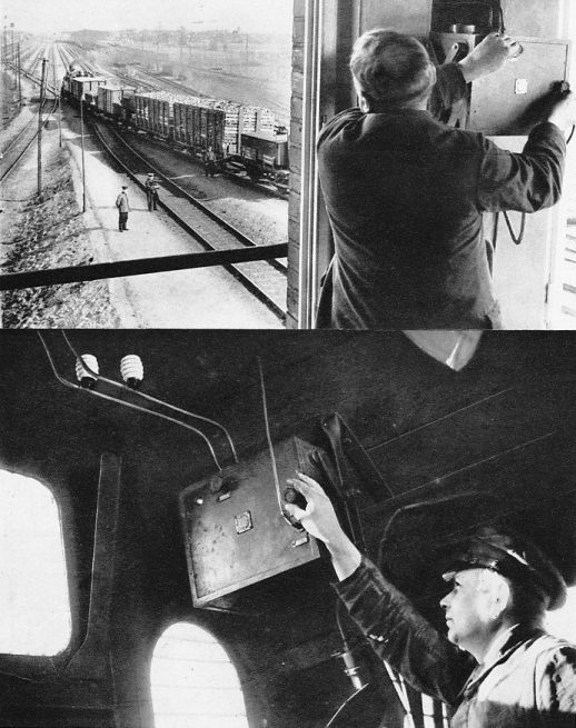 Antenele de emisie și recepție vor fi văzute pentru prima dată pe cabina locomotivei cu abur 94 521. Avea legătură cu un difuzor în cabina de comandă a lucrărilor de manevră. Controlorul ascultă conversația dintre operatorul de manevră și mecanicul de locomotivă. Mecanicul de tren, cu un microfon în mână, vorbește cu cabina de comandă. Controlorul de manevră dă instrucțiuni prin telefonul cu unde ultrascurte. Transmisia dintre locomotivă și cabină este de obicei perfect clară, în ciuda perturbațiilor electrice locale. Prima locomotivă de manevră a căilor ferate de stat germane, care a fost echipată cu o stație de transmisie și de recepție, a funcționat în șantierele de la Wustermark, un nod feroviar în apropiere de Berlin.