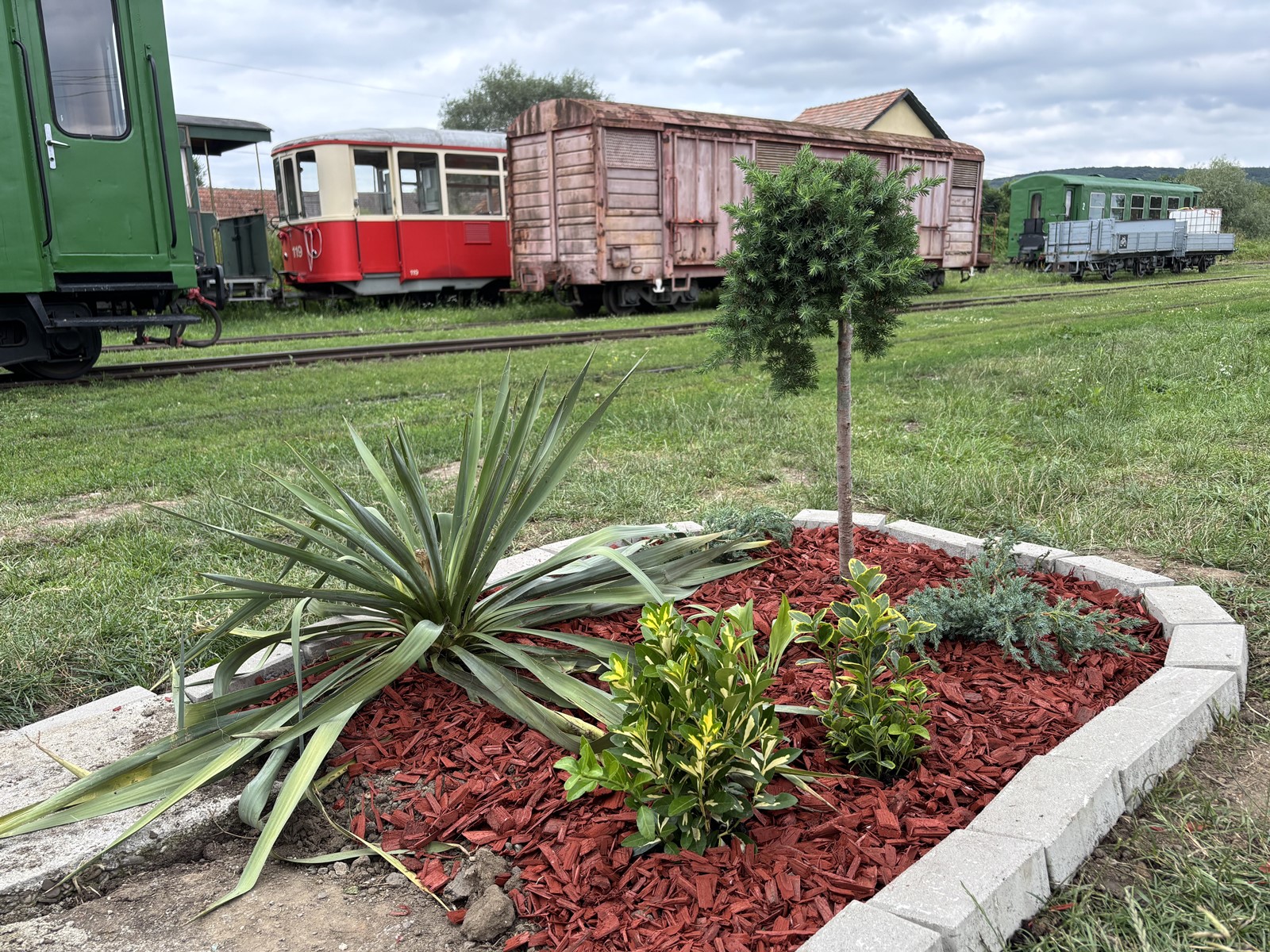 Jurnaliștii noștri au contribuit cu vase neo-clasice din beton, în acord cu stilul arhitectural, dar și cu specii de trandafiri, rezistente pe timp de iarnă, respectiv Yucca și Canna, în timp ce voluntarii liniei de patrimoniu au contribuit cu tipuri de Euonymus și chiparos. Plantele au fost alese cu grijă, pentru a fi înverzite în majoritatea timpului.