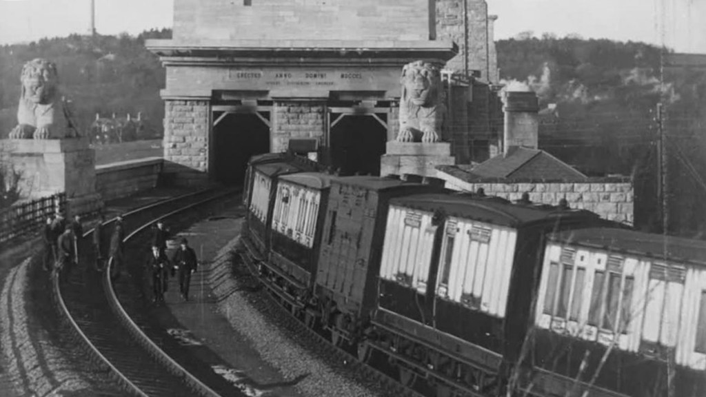 Construit în 1848–1849 pentru extinderea companiei London and North Western Railway (LNWR) de către Robert Stephenson, portalul a fost proiectat de inginerul William Parsons (cunoscut pentru lucrări anterioare cu influență egipteană).